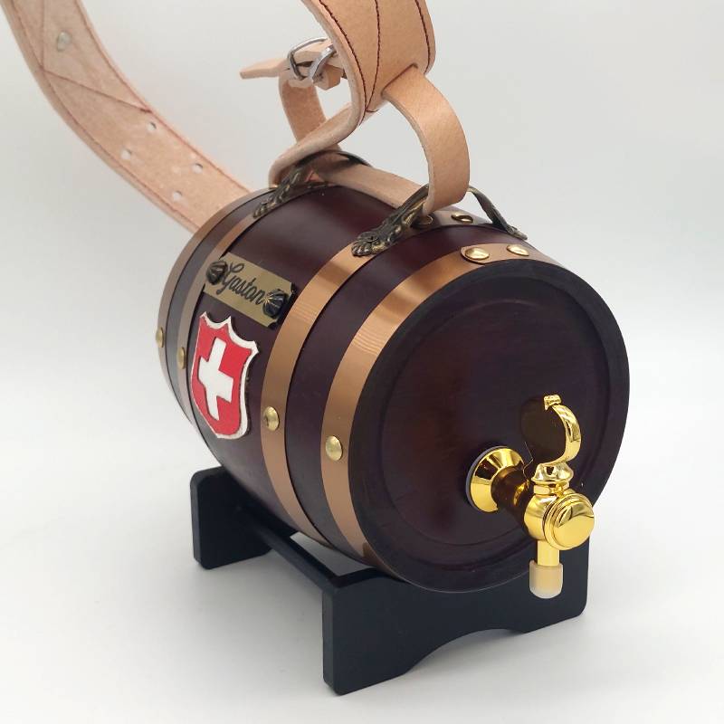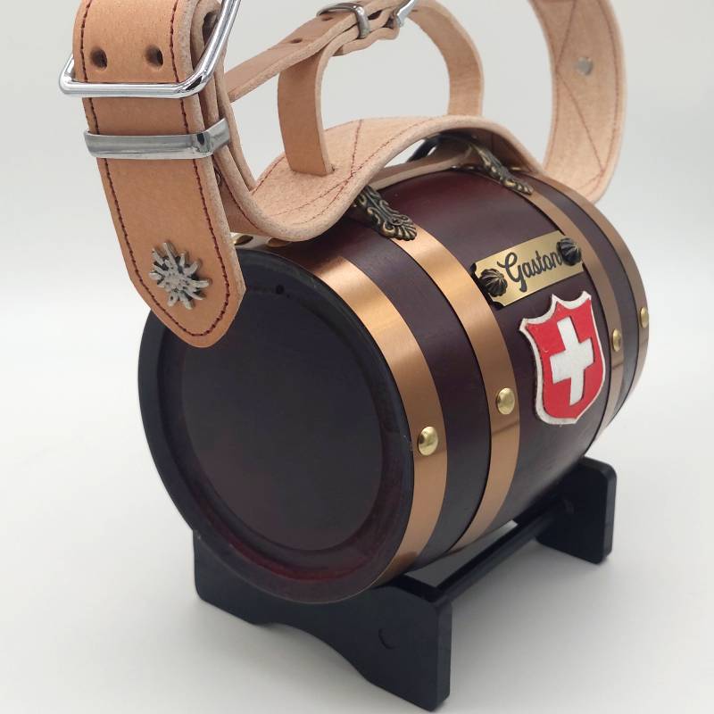 Een "Deluxe" uitvoering van het wereldberoemde Sint Bernard tonnetje. Prachtige beugels , siernagels, een lederen Zwitsers schild en een in het oog springend naamplaatje maken van dit tonnetje een pronkstuk.
